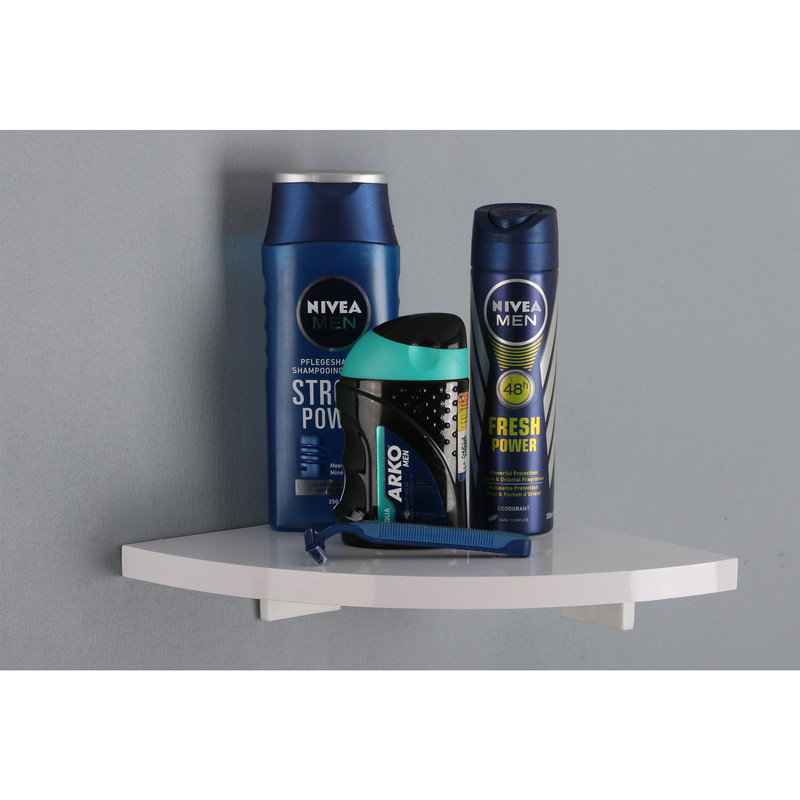 شلف دیواری «دلفین» ساخته شده از جنس پی وی سی با ضخامت 16 میلیمتر. این محصول داری طیف وسیعی از کاربرد است. در آشپزخانه برای قرار دادن شیشه و بطری ها، در اتاق برای نگهداری گلدان و لوازم دکوری ،در دستشویی و حمام، زیر آینه یا بصورت مجزا برای قرار دادن لوازم شوینده و آرایشی و... .نصب این محصول با 2 پایه فلزی که به همراه شلف است به سادگی انجام میپذیرد و در پوشی روی پایه قرار میگیرد که روی پیچ را بپوشاند. این شلف ضد آب است و میتواند مستقیما در معرض رطوبت و آب قرار بگیرد.