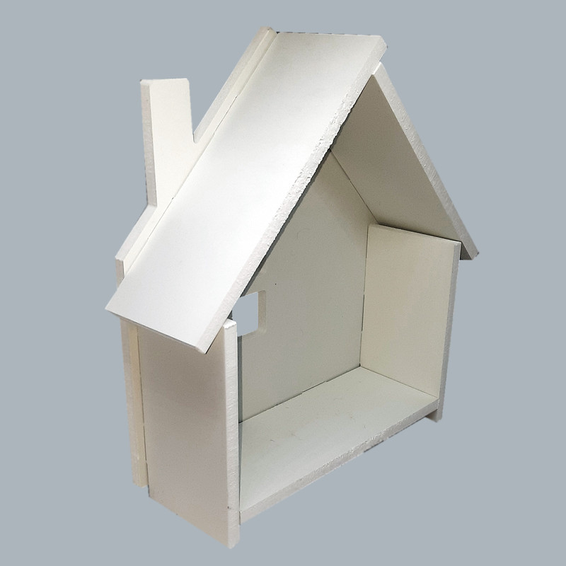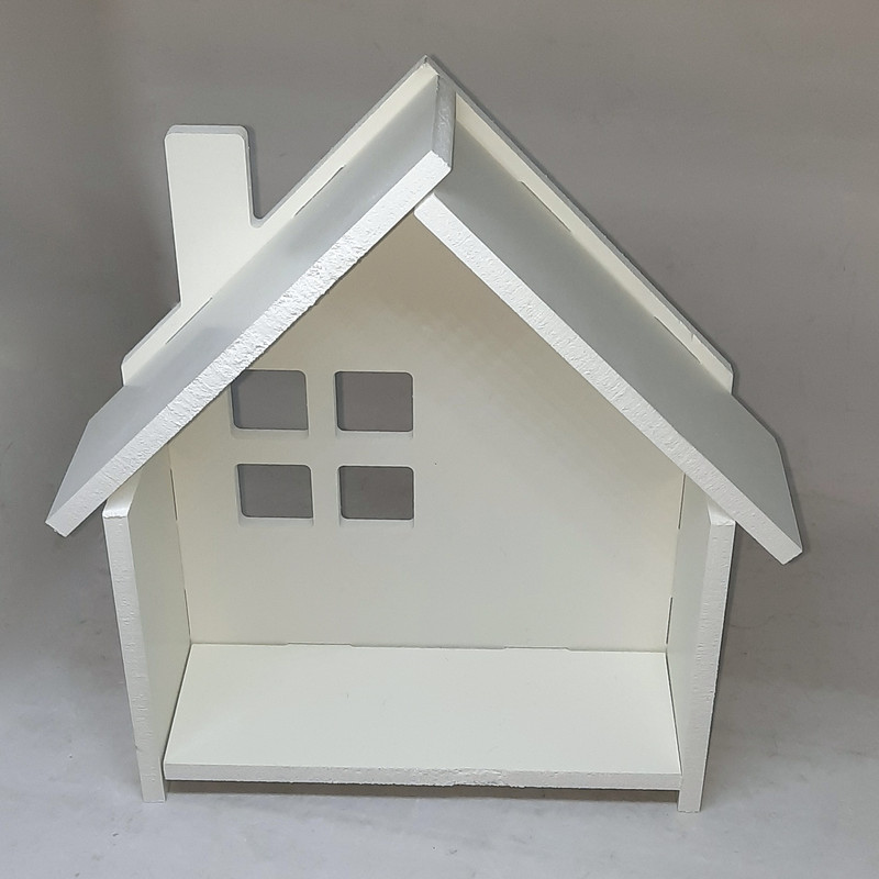 شلف دیواری طرح کلبه مدل Si-268 ساخته شده از جنس پی وی سی ضد آب و قابل شستشو به رنگ سفید مناسب برای جایگیری انواع دکوری در خانه و محل کار با نصب راحت میباشد.