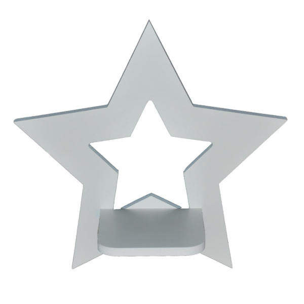 شلف دیواری طرح ستاره با ابعاد 25 x25سانتی متر و ضخامت 0.8سانتی متر دارای طبقه 10 سانتی متری با رنگ سفید قابلیت نصب روی دیوار جهت استفاده مناسب برای اتاق خواب کودک و اشپزخانه و پذیرایی جهت قراردادان دکور میباشد .