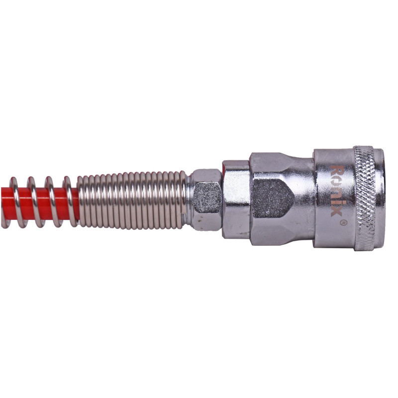 شلنگ باد فنری 5 متری رونیکس ساخته شده از جنس پلی یورتان (PU) با استحکام و طول عمر زیاد و مقاومت بالا در برابر کشش و فشار باد، دارای قابلیت اتصال به انواع کمپرسورهاست. از شلنگ باد و یا همان شلنگ فنری به عنوان ضروری ترین لوازم جانبی کمپرسورها اشاره کنیم.این شلنگ با سایز 5 × 8 میلیمتری، دارای کوبلینگ های باد سایز بزرگ و دو فنر بلند و قوی است که کارکرد آن را به حد مطلوبی رسانده اند.وزن خالص این شلنگ، 350 گرم، وزن بسته بندی آن 400 گرم و ابعاد بستهبندی آن 30×6.5×6 سانتی متر است.این شلنگ ساخت شرکت رونیکس و محصول کشور چین است.