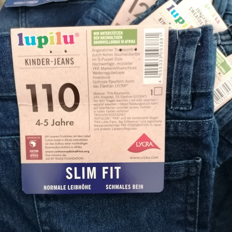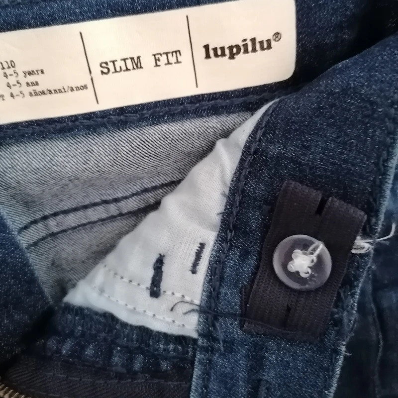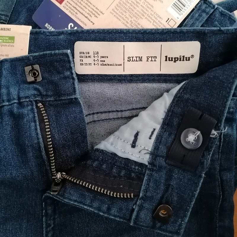 شلوار جین لوپیلو آمیخته ای از 64 درصد نخ و پنبه و 35 درصد پلی استر و 1 درصد الاستین بسیار نرم و لطیف می باشد و چون بر چسب کیفیت دارد هیچگونه حساسیتی ایجاد نمی کند. لازم به توضیح است این شلوار دگمه رگلاژ دارد و شما می توانید یک دو سایز کوچک یا بزرگ کنید و سایزبندی این لباس بر اساس سایزهای اروپایی یورو ( EUR ) می باشد و نوع استایل اصلی در عکس ها نشات دهنده جذب یا آزاد و یا بلند و کوتاه بودن لباس است . شما حتما لباس اروپایی را نسبت به قد ( سانتی متر ) فرزندانتان انتخاب کنید حتما جدول انتخاب سایزها را در قسمت عکس ها مطالعه بفرمایید .
