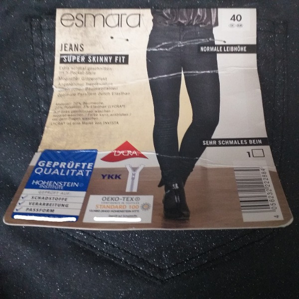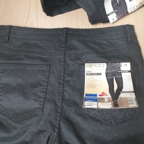 | جزئیات | شلوار زنانه اسمارا آلمان بسیار شیک و تنخوری عالی دارد رنگ مشکی اکلیلی وحالت لمه دارد دارای دوجیب جلو و نیز جیب کوچک و دوجیب پشت هست اندازه سایز 40 قد 101cm فاق 30cm نصف کمر 40cm تا42سانت هم کشیده میشود |