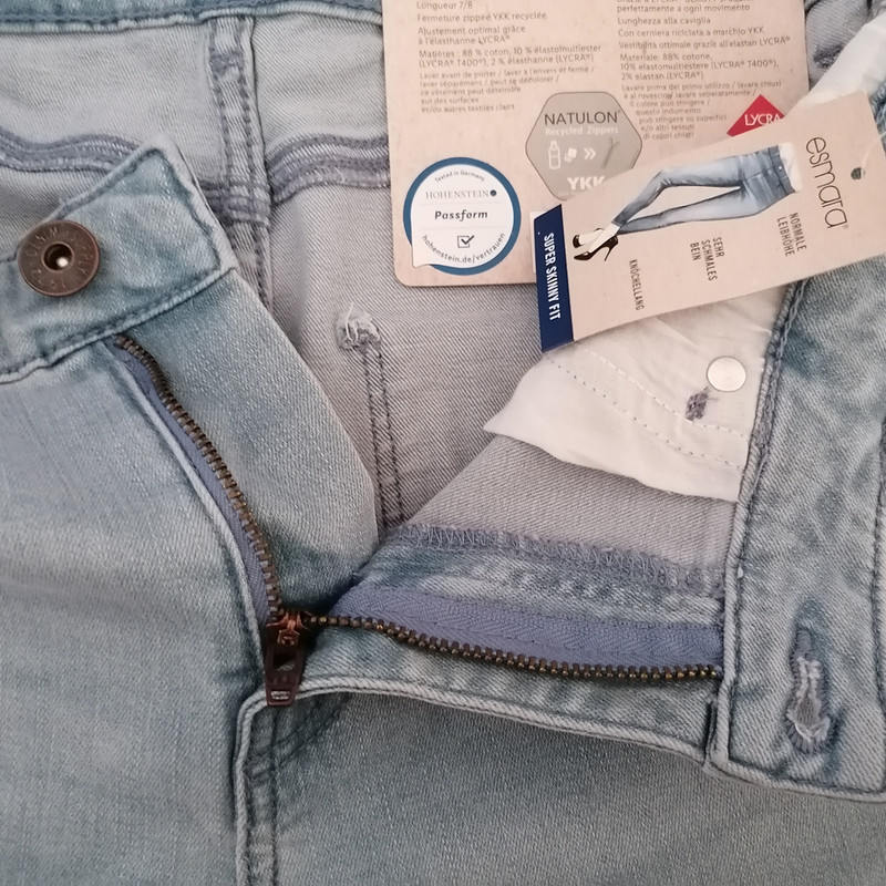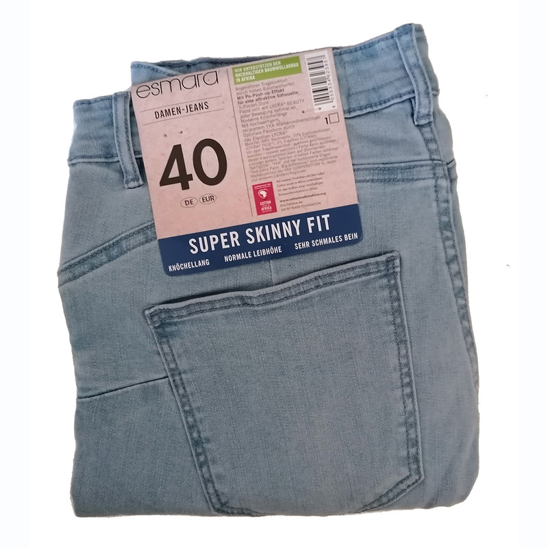 شلوار جین اسمارا مدل سوپر اسکینی فیت آمیخته ای از 88 درصد نخ و پنبه و 10 درصد پلی استر و 2 درصد الاستین می باشد و چون بر چسب کیفیت دارد هیچگونه حساسیتی ایجاد نمی کند. شلوار جین اسکینی فیت جزو شلوارهای جذب و تنگ می باشد به گونه ای که در قسمت ران و باسن و مچ پا کاملا تنگ می باشد .( مدل اسکینی فیت در قسمت مچ پا کمی آزادتر از مدل سوپر اسکینی فیت می باشد ) این شلوار روی بدن حالت خوبی به خود می گیرد و می توان آن را در تمام فصل سال پوشید .لازم به توضیح است سایزبندی این لباس بر اساس سایزهای اروپایی یورو ( EUR ) می باشد و نوع استایل اصلی در عکس ها نشات دهنده جذب یا آزاد و یا بلند و کوتاه بودن لباس است . در کل سایز لباس های ایرانی نسبت به سایزهای آلمانی ( EUR ) در اکثر مواقع یکی نیست. به طور کلی برای انتخاب لباس آلمانی شما باید یک سایز از سایز لباس ایرانی خود را کم کنید به عنوان مثال اگر در سایز ایرانی XL می پوشید باید در سایز آلمانی L را انتخاب کنید حتما جدول تبدیل سایزهای ایرانی به آلمانی را در قسمت عکسها مطالعه بفرمایید...لطفا با رنگهای مشابه بشویید و از مواد شوینده رنگی استفاده کنید....