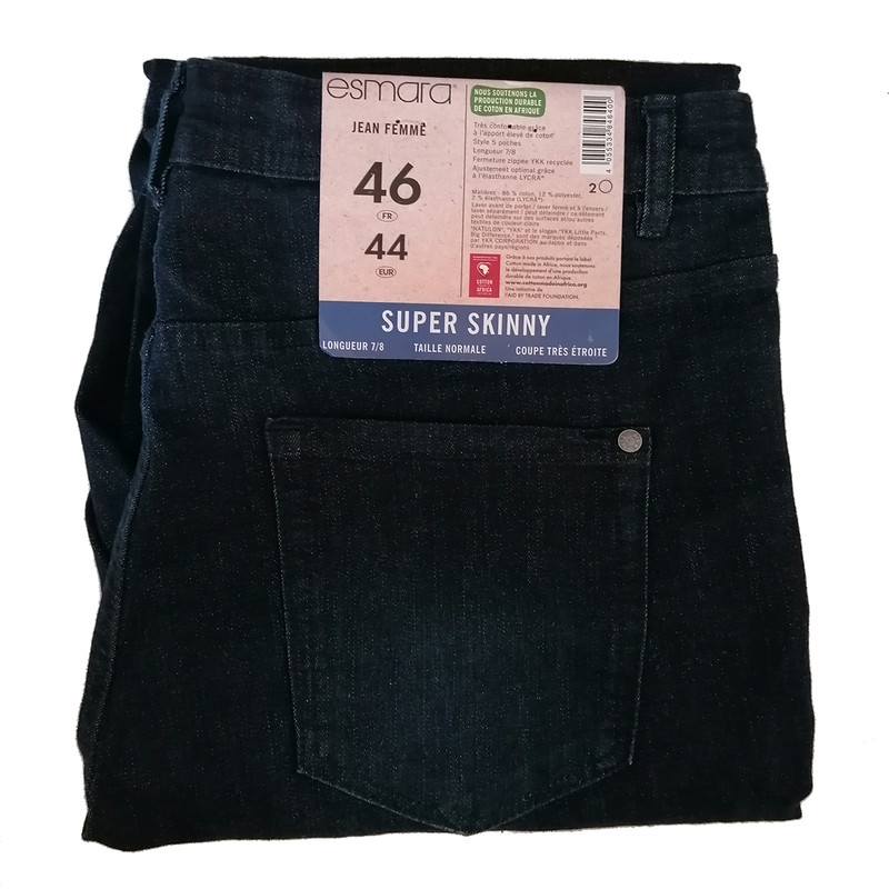 شلوار جین اسمارا مدل سوپر اسکینی فیت آمیخته ای از 86 درصد نخ و پنبه و 12 درصد پلی استر و 2 درصد الاستین می باشد و چون بر چسب کیفیت دارد هیچگونه حساسیتی ایجاد نمی کند. شلوار جین اسکینی فیت جزو شلوارهای جذب و تنگ می باشد به گونه ای که در قسمت ران و باسن و مچ پا کاملا تنگ می باشد .( مدل اسکینی فیت در قسمت مچ پا کمی آزادتر از مدل سوپر اسکینی فیت می باشد ) این شلوار روی بدن حالت خوبی به خود می گیرد و می توان آن را در تمام فصل سال پوشید .لازم به توضیح است سایزبندی این لباس بر اساس سایزهای اروپایی یورو ( EUR ) می باشد و نوع استایل اصلی در عکس ها نشات دهنده جذب یا آزاد و یا بلند و کوتاه بودن لباس است . در کل سایز لباس های ایرانی نسبت به سایزهای آلمانی ( EUR ) در اکثر مواقع یکی نیست. به طور کلی برای انتخاب لباس آلمانی شما باید یک سایز از سایز لباس ایرانی خود را کم کنید به عنوان مثال اگر در سایز ایرانی XL می پوشید باید در سایز آلمانی L را انتخاب کنید حتما جدول تبدیل سایزهای ایرانی به آلمانی را در قسمت عکسها مطالعه بفرمایید...لطفا با رنگهای مشابه بشویید و از مواد شوینده رنگی استفاده کنید....