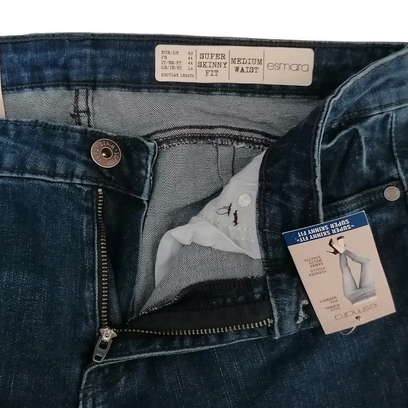 شلوار جین اسمارا مدل سوپر اسکینی فیت آمیخته ای از 88 درصد نخ و پنبه و 10 درصد پلی استر و 2 درصد الاستین می باشد و چون بر چسب کیفیت دارد هیچگونه حساسیتی ایجاد نمی کند. شلوار جین اسکینی فیت جزو شلوارهای جذب و تنگ می باشد به گونه ای که در قسمت ران و باسن و مچ پا کاملا تنگ می باشد .( مدل اسکینی فیت در قسمت مچ پا کمی آزادتر از مدل سوپر اسکینی فیت می باشد ) این شلوار روی بدن حالت خوبی به خود می گیرد و می توان آن را در تمام فصل سال پوشید .لازم به توضیح است سایزبندی این لباس بر اساس سایزهای اروپایی یورو ( EUR ) می باشد و نوع استایل اصلی در عکس ها نشات دهنده جذب یا آزاد و یا بلند و کوتاه بودن لباس است . در کل سایز لباس های ایرانی نسبت به سایزهای آلمانی ( EUR ) در اکثر مواقع یکی نیست. به طور کلی برای انتخاب لباس آلمانی شما باید یک سایز از سایز لباس ایرانی خود را کم کنید به عنوان مثال اگر در سایز ایرانی XL می پوشید باید در سایز آلمانی L را انتخاب کنید حتما جدول تبدیل سایزهای ایرانی به آلمانی را در قسمت عکسها مطالعه بفرمایید...لطفا با رنگهای مشابه بشویید و از مواد شوینده رنگی استفاده کنید....
