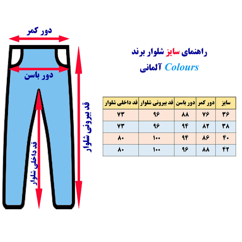 شلوار جین کتان (مدل سنگ شور) برند Colours از برندهای معروف و فوق العاده با کیفیت آلمانی می باشد. این شلوار آلمانی از 98 درصد کتان و 2 درصد الاستین ساخته شده است. استفاده از الاستین در این شلوار موجب مقاومت در برابر پارگی و زانو افتادگی می شود. همچنین پایین دم پای این شلوار دارای زیپ بوده که زیبایی آن را دوچندان نموده و از سایز شلوارها متمایز می سازد. با توجه به متفاوت بودن سایز شلوارهای ایرانی و اروپایی و... حتما به تصویر پیوست این کالا در مورد راهنمای انتخاب سایز، دقت نمایید.