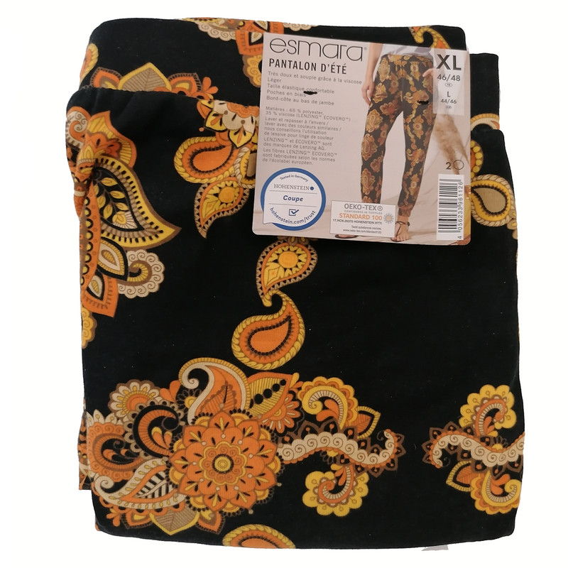 شلوار اسمارا مدل اسلش آمیخته ای از 65 درصد پلی استر و 35 درصد ویسکوز می باشد و چون بر چسب کیفیت دارد هیچگونه حساسیتی ایجاد نمی کند. لازم به توضیح است سایزبندی این لباس بر اساس سایزهای اروپایی یورو ( EUR ) می باشد . در کل سایز لباس های ایرانی نسبت به سایزهای آلمانی ( EUR ) در اکثر مواقع یکی نیست ... به طور کلی برای انتخاب لباس آلمانی شما باید یک سایز از سایز لباس ایرانی خود را کم کنید ... به عنوان مثال اگر در سایز ایرانی XL می پوشید باید در سایز آلمانی L را انتخاب کنید ... حتما جدول تبدیل سایزهای ایرانی به آلمانی را در قسمت عکسها مطالعه بفرمایید...لطفا با رنگهای مشابه بشویید و از مواد شوینده رنگی استفاده کنید . این شلوار زیبا را بپوشید و از زندگی لذت ببرید ...