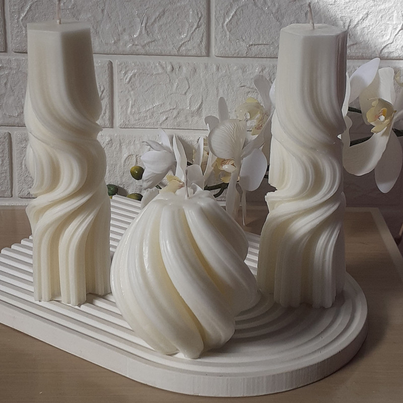 شمع دست ساز مدل استوانه موج دار و پیچ مجموعه 3 عددی