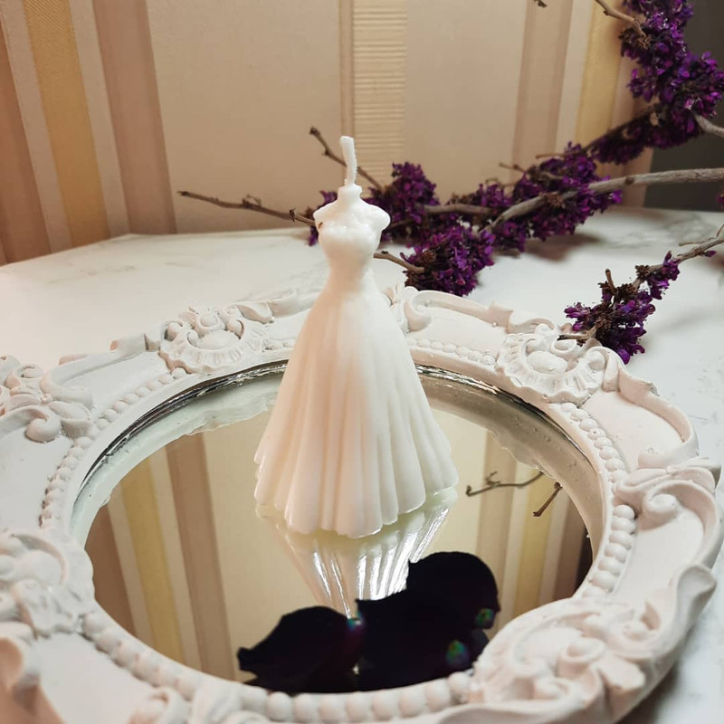 این شمع دست ساز مدل عروس است .تهیه شده از پارافین گیاهی با عطر فرانسوی است . فوق العاده زیبا و با کیفیت است .مناسب برای دکوراسیون منزل و سفره عقد و مجالس شادی وعروسها میباشد .