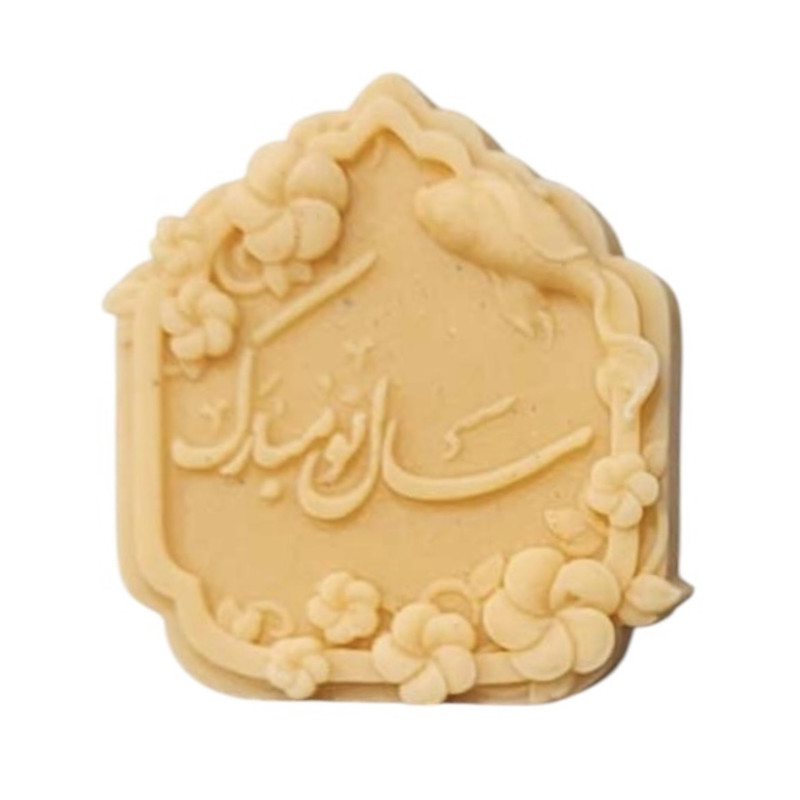 شمع کتیبه سال نو مبارک با طراحی زیبا. برجسته است،اطرافش با نقش هایی از گل ها و یک ماهی نزئین شده است.و میتوانید به عنوان یک دکوری زیبا بر سر سفره هفت سین قرار دهید.