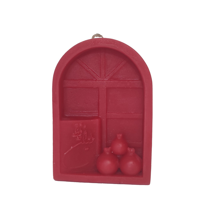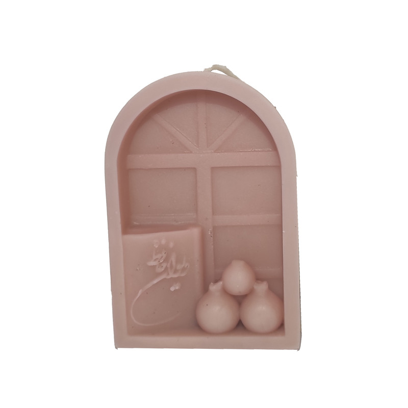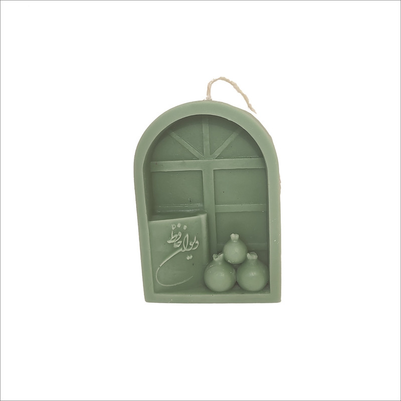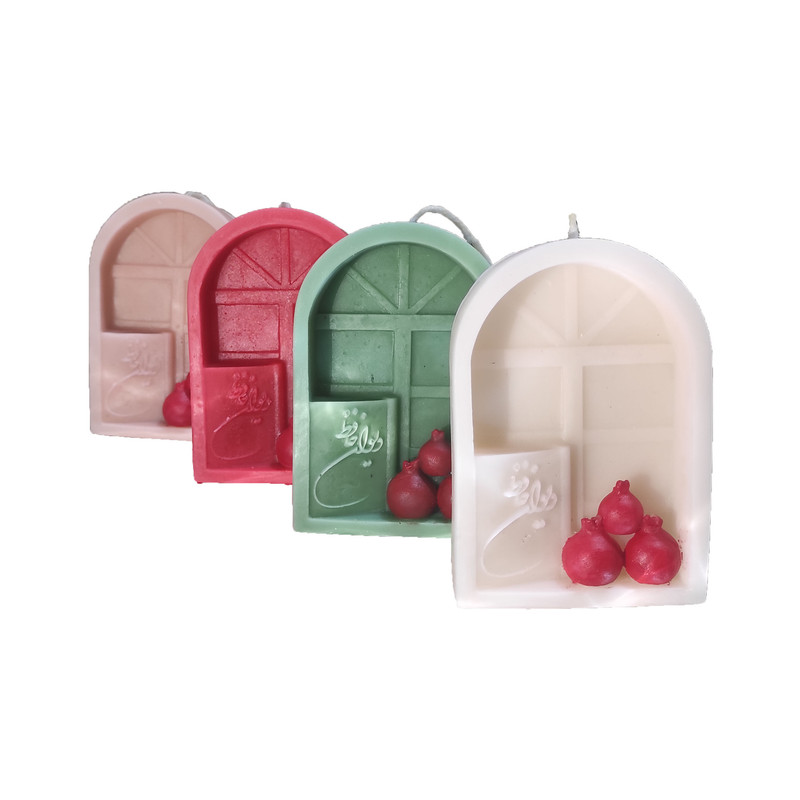 این شمع با پارافین 3% و 1% تهیه شده و دارای جزئیات و طرح بسیار خاص می باشد. داخل طرح شمع، روی طاقچه انار و دیوان حافظ وجود دارد که میتوان از این شمع بعنوان دکوراتیو هم استفاده کرد و علاوه بر روشنایی، برای زیبایی دکور و سفره ی یلدای شما کاربرد دارد. این شمع در چهار رنگ سبز، قرمز، کاهگلی و کرم موجود می باشد