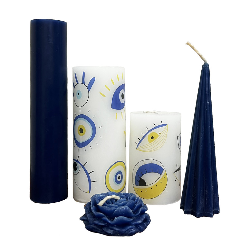 | سایر توضیحات | ابعاد و سایز شمع ها: استوانه سرمه ای قطر4سانتی متر وارتفاع20سانتی متر قطر استوانه های سفید هردو 6سانتی متر و در ارتفاع 10و15 سانتی متر می باشد شمع هرم شکل ارتفاع15سانتی متر می باشد سایز شمع گل متناسب با ابعاد نوشته شده می باشد |