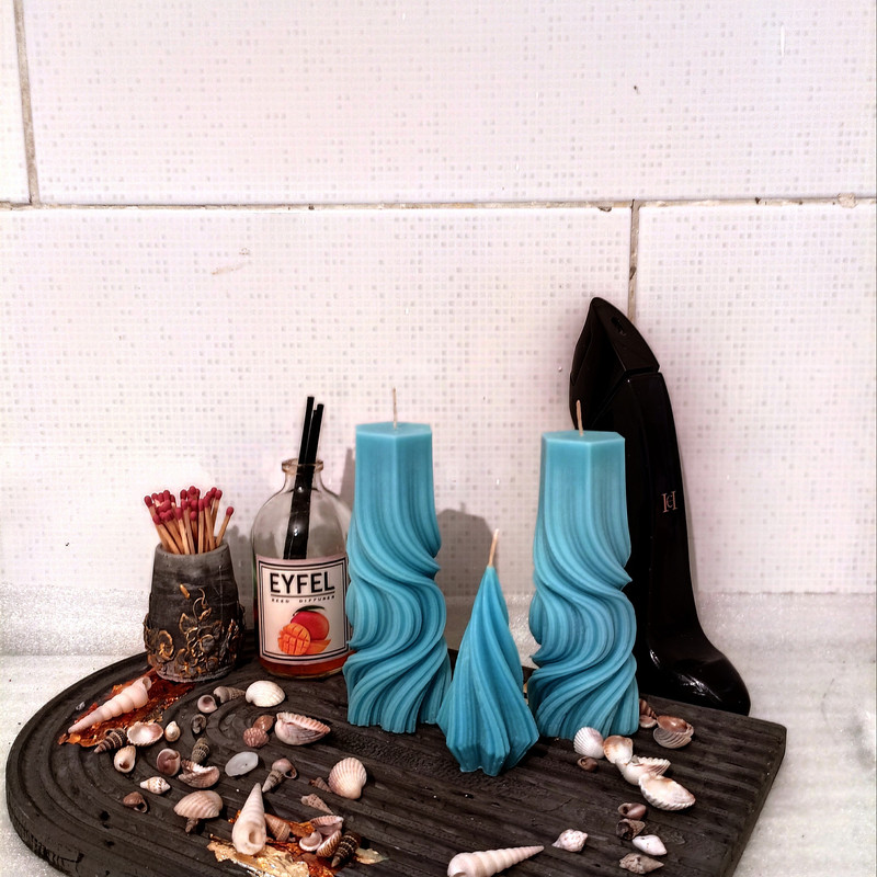 شمع استوانه که دارای سوخت بالا می باشد وبه خاطر استفاده از پارافین مرغوب بدون بوی نامطبوع می باشد همچنین دارای فیتیله مرغوب بوده این کار شامل 3 عدد شمع می باشد. شمع کاج. و دوعدد شمع استوانه می باشد