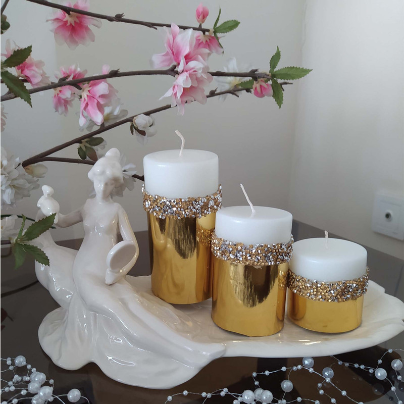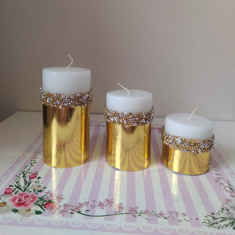 سه عدد شمع باقطر6سانتیمتر و به طول های 12 و9 و 6 سانتیمتر می باشد. اگر به دنبال یک وسیله دکوری خاص هستید این شمع ها میتوانندگرما بخش دلهای باصفای شما باشد و زیبایی خیره کننده ای را برای منزل شما به ارمغان آورد.قابل استفاده روی انواع جاشمعی فانوس و سینی های تزیینی می باشد.