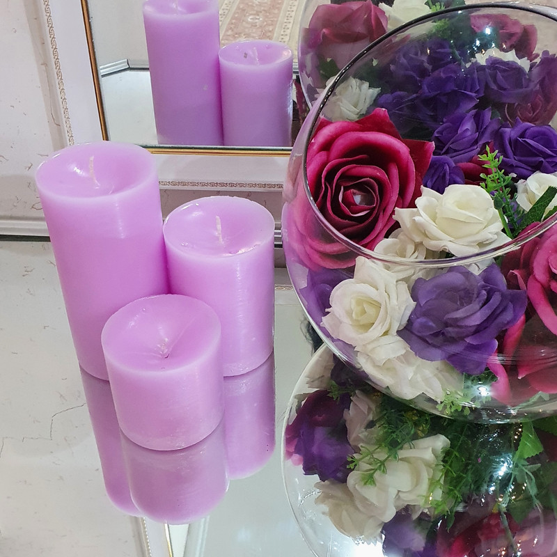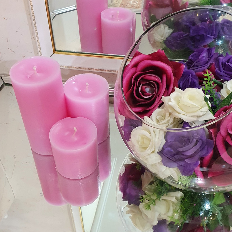 شمع مدل استوانه شامل سه عدد شمع باکیفیت بالا و رنگ های بسیار جذاب با ساعت سوخت طولانی تقدیم شما میشود، بهترین انتخاب برای شماست.