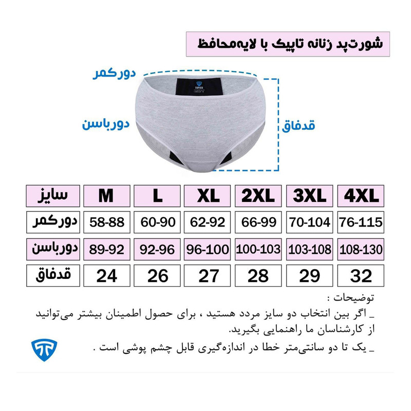 شورتپد تاپیک با فناوری انحصاری پد جاذب مخصوص بانوان میباشد و با جذب رطوبت باعث جلوگیری از نفوذ خون به لباس شده است.