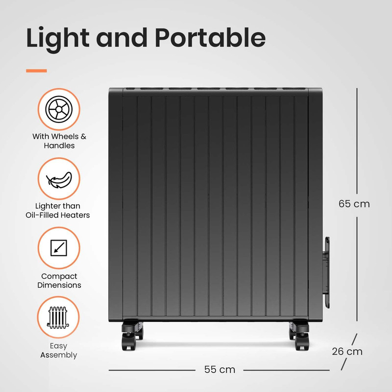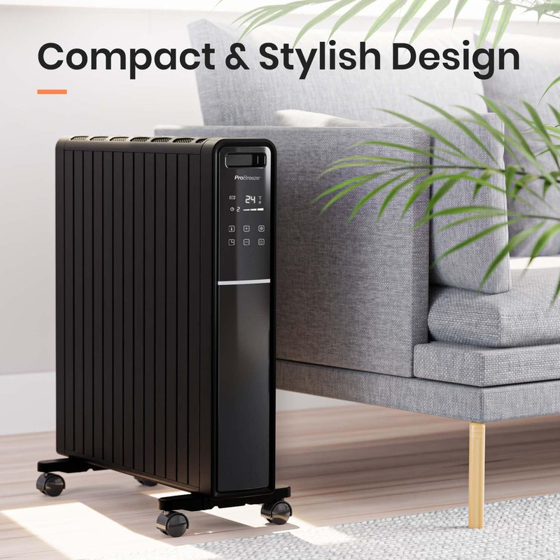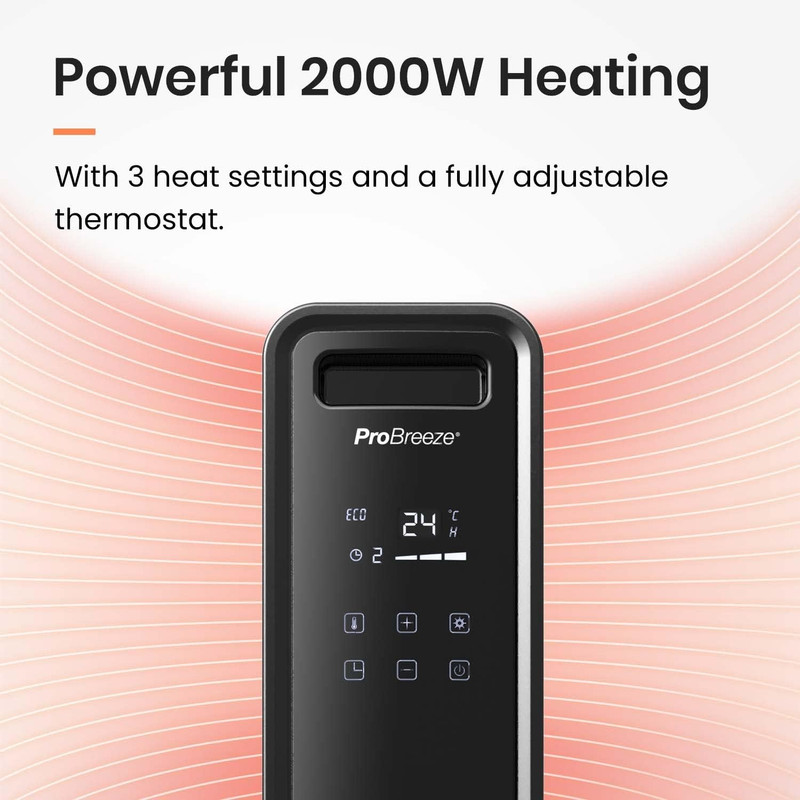 | سایر توضیحات | رادیاتور کانوکتور بدون روغن Pro Breeze® 2000W با تایمر 24 ساعته، نمایشگر دیجیتال LED، کنترل از راه دور، ترموستات و قطع کن ایمنی این رادیاتور قابل حمل بدون روغن ۲۰۰۰ واتی دارای فناوری گرمایش بدون روغن است که هوای گرم را سریعتر و ایمنتر در سراسر خانه، محل کار، اتاق خواب یا اتاق نشیمن شما گرم و گردش میدهد. برخلاف بخاریهای فندار، رادیاتور کاملاً بیصدا است. حالت روشن/خاموش قابل برنامهریزی ۲۴ ساعته: زمان روشن و خاموش شدن بخاری برقی را تا ۲۴ ساعت انتخاب کنید - از خواب بیدار شوید یا به یک اتاق گرم و دنج برگردید بدون اینکه کل خانهتان گرم شود حالت اقتصادی صرفهجویی در مصرف انرژی: پس از تنظیم ترموستات کاملاً قابل تنظیم بین 10 تا 30 درجه سانتیگراد، بخاری به طور خودکار روشن و خاموش میشود تا دمای دلخواه شما را حفظ کند و دمای اتاق شما را کاملاً حفظ کند و در عین حال از نظر انرژی نیز کارآمد باشد. نمایشگر دیجیتال و کنترل از راه دور. رادیاتور بدون روغن پرو بریز دیجیتال ۲۰۰۰ وات: دارای کنترل از راه دور، تایمر داخلی 24 ساعته، 3 حالت تنظیم قدرت و ترموستات با نمایشگر دیجیتال، کنترل از راه دور و ترموستات برای تنظیم دمای دلخواه اتاق، اتاقها را در هر شکل و اندازهای به سرعت و به طور موثر گرم میکند. فناوری پیشرفته بدون روغن آن، فرآیند گرمایش را تسریع میکند تا اتاق خواب، اتاق نشیمن یا محل کار شما را سریعتر و ایمنتر از رادیاتورهای روغنی سنتی گرم کند. تایمر روشن/خاموش 24 ساعته برای ادغام گرمایش با برنامههای روزمره خانه یا محل کار شما عالی است و حالت اقتصادی، یک راهحل گرمایشی با بهرهوری انرژی ارائه میدهد. خروجی: حداکثر ۲۰۰۰ وات کنترل از راه دور بیسیم ، نمایشگر دیجیتال ، تایمر ۲۴ ساعته ، کابل برق ۱.۵ متری ، چرخهای کاستور فناوری بدون روغن رادیاتور بدون روغن Pro Breeze سریعتر از رادیاتورهای روغنی سنتی گرم میشود و به سرعت به دمایی که روی ترموستات داخلی انتخاب کردهاید میرسد. فناوری بدون روغن به این معنی است که رادیاتور سبکتر و به راحتی قابل حمل به مکانهای مختلف در اطراف خانه شماست، ضمن اینکه ایمنی بیشتری را در مقایسه با بخاریهای سنتی تضمین میکند. علاوه بر این، این بخاری برخلاف بخاریهای فندار، عملکرد کاملاً بیصدایی دارد. ۳ تنظیم گرما با ۳ تنظیم حرارت متغیر برای انعطافپذیری کامل جهت رسیدن و حفظ دمای مطلوب اتاق، حتی در مواقع بسیار سرد. تنظیمات خروجی گرما، ترموستات کاملاً قابل تنظیم داخلی رادیاتور را تکمیل میکند تا به شما امکان دهد دمای اتاق مورد نظر خود را با دقت انتخاب و کنترل کنید. کنترل از راه دور بیسیم یک کنترل بیسیم با کاربری آسان، کنترل کامل رادیاتور را حتی از آن سوی اتاق به شما میدهد که برای تغییر تنظیمات از روی تخت یا مبل شما عالی است. پنل LED رادیاتور، حتی در نور کم، دمای اتاق را به وضوح نشان میدهد. حالت اکو حالت اقتصادی صرفهجویی در مصرف انرژی به شما این امکان را میدهد که دمای دلخواه خود را بر حسب درجه سانتیگراد تنظیم کنید و پس از رسیدن به آن دما، رادیاتور خاموش میشود. این یک راهکار گرمایشی کمهزینه و کارآمد ارائه میدهد و در هزینههای انرژی شما صرفهجویی میکند. تایمر ۲۴ ساعته یک تایمر ۲۴ ساعته که به راحتی قابل برنامهریزی است به شما این امکان را میدهد که رادیاتور را طوری تنظیم کنید که در هر زمانی از شبانهروز که میخواهید به طور خودکار روشن یا خاموش شود. این قابلیت برای زمانی که کسی در خانه نیست ایدهآل است - برای مثال، خاموش شدن هنگام رفتن به محل کار یا روشن شدن قبل از بازگشت به خانه. ویژگیهای ایمنی داخلی ایمنی در دستگاههای گرمایشی از اهمیت بالایی برخوردار است و به همین دلیل رادیاتور بدون روغن Pro Breeze به 3 ویژگی ایمنی مجهز شده است: ۱. محافظت در برابر گرمای بیش از حد ۲. کلید ایمنی واژگونی ۳. فناوری بدون روغن بعضی از بخاریها به دلیل گرد و غبار و ذراتی که به طور طبیعی جمع میشوند، ممکن است در اولین استفاده بو بدهند؛ این طبیعی است و بو