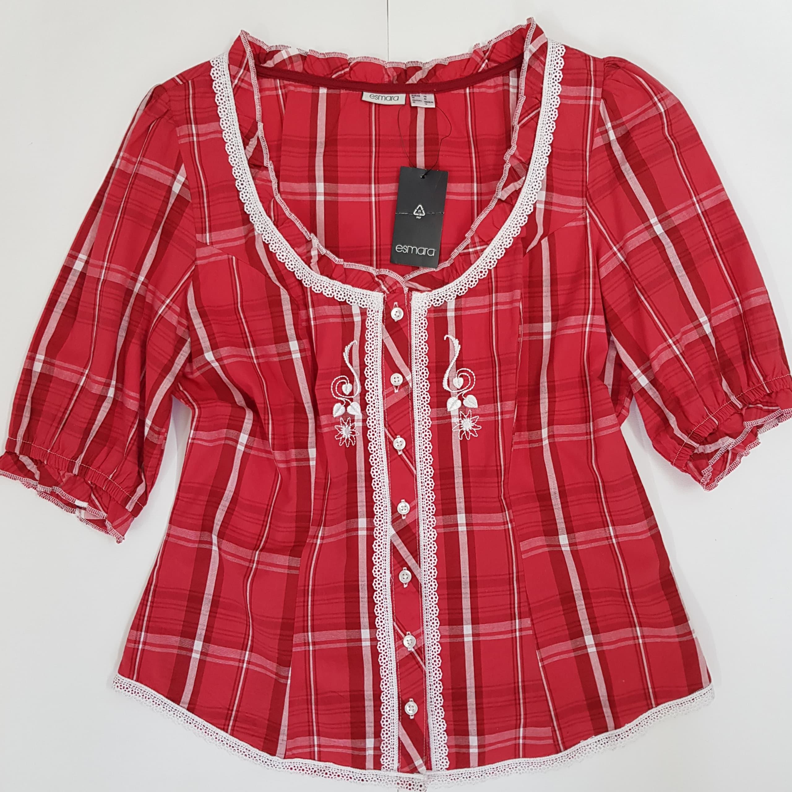 شومیز سفید و قرمز چهارخونه گیپوردار اسمارا ، جنس ۱۰۰ درصد نخ ، ضد حساسیت و ضد تعریق ، جنس پارچه فوق العاده لطیف و دوخت عالی ، بارکد دار ، ضمانت اورجینال برند Esmara آلمان فری سایز از ۴۰ تا ۴۲ عرض سینه ۵۰ سانت قد آستین ۳۳ سانت قد شومیز ۶۰ سانت ارسال با پست پیشتاز به سراسر کشور