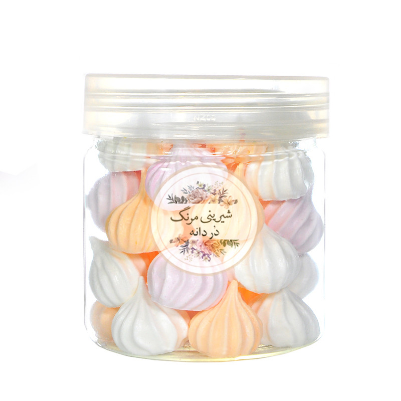 شیرینی های مرنگ در دانه با طعم های میوه ای ترد و خوشمزه آماده مصرف برای همه افراد مخصوصا کودکان و همچنین برای جایگزینی قند و غیره کنار چای یا شیر فوق العاده است. شیرینی های مرنگ باید خارج از یخچال در ظرف در بسته نگهداری شود تا ترد و پفکی باقی بماند. . در غیر اینصورت خراب نمیشود فقط ترد بودن خود را از دست میدهد.. وزن خالص این محصول بین 37 گرم تا 40 گرم میباشد .