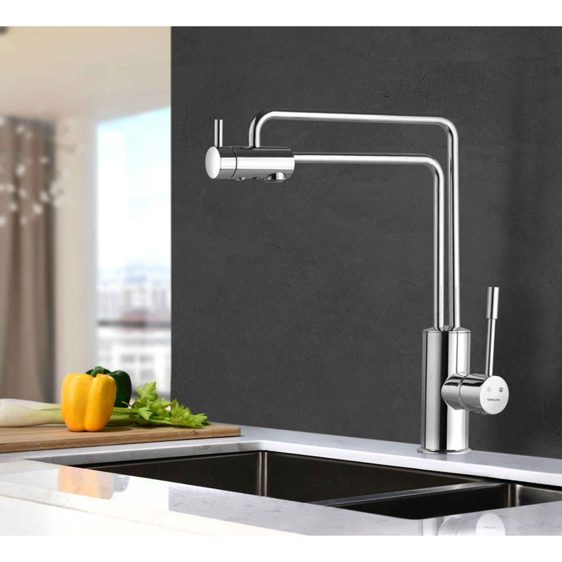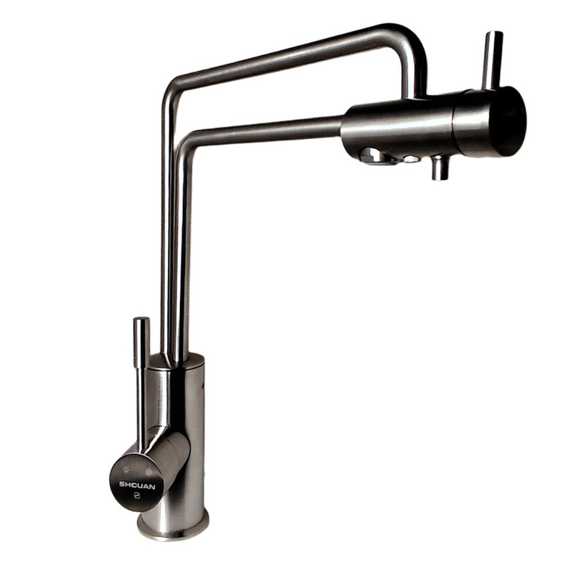 شیر آشپزخانه شوان مدل لوسید طرح دومنظوره میباشد، به این معنی که دو خروجی برای شیرآب تعبیه شده، یکی به منظور استفاده از آب شهری و دومی به منظور استفاده از آب دستگاه تسویه در نتیجه شما میتوانید از این مدل شیر با دو کاربرد استفاده کنید و همچنین فضای کمتری از سینک استفاده شود.