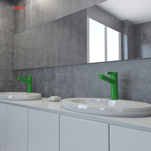 شیر فوق بهمنظور استفاده در روشویی طراحی شده است. شرکت «کی دبلیو سی» (kwc) این شیر را تولید میکند و آن را با نام «آوا» به بازار عرضه کرده است. علمک این شیر به شکل ثابت طراحی شده است و تنها بخش متحرک آن دستهی اهرمی شیر است. باکمک این دسته میتوانید میزان دبی و دمای آب خروجی از آبفشان شیر را کنترل کنید. حداکثر دبی آب این محصول 12-7.5 لیتر بر دقیقه است که این میزان باتوجه به فشار آب ورودی به شیر تغییر میکند. شرکت کی دبلیو سی در انتخاب آلیاژ این شیر بهشکلی هوشمندانه عمل کرده است. این شرکت بخشهایی از شیر را که در تماس مستقیم با آب قرار دارند از آلیاژ برنج تولید کرده است و برای قسمتهایی مانند دسته که در تماس با دست و فشارهای خارجی هستند از آلیاژ زاماک استفاده کرده است. سطح خارجی این محصول نیز با آبکاری باکیفیت کروم پوشیده شده است و جلوهی زیبایی دارد.