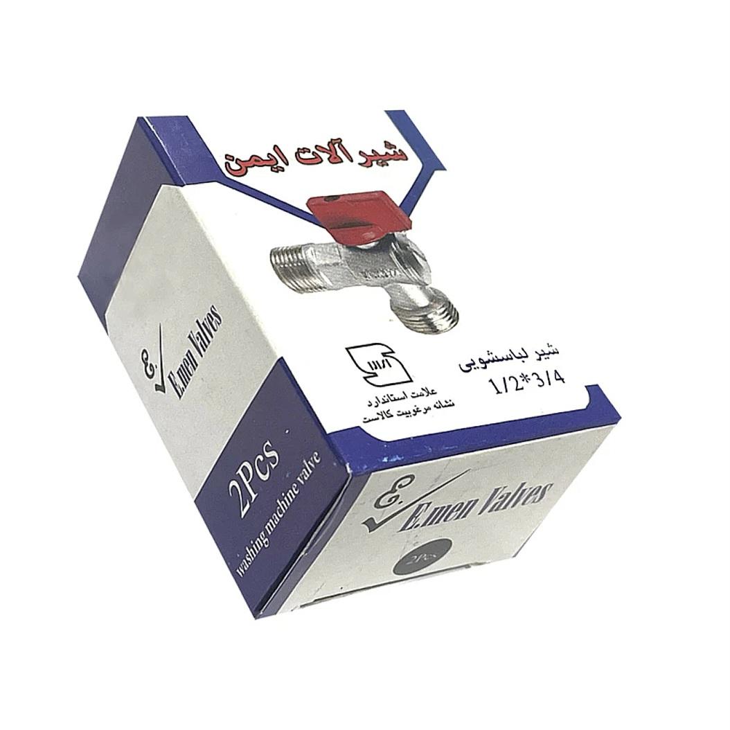 شیر لباسشویی ایمن مجموعه ۲ عددی میباشد که رابطی است بین شبکه لوله کشی و ماشین لباسشویی که به وسیله شلنگ به هم وصل می شوند. این شیر از قطعاتی چون تنه برنجی ، دسته توپی فلزی ، ساق و ساچمه تشکیل می شود. جنس این شیر از آلیاژ برنج بوده و دارای نشان استاندارد ملی می باشد