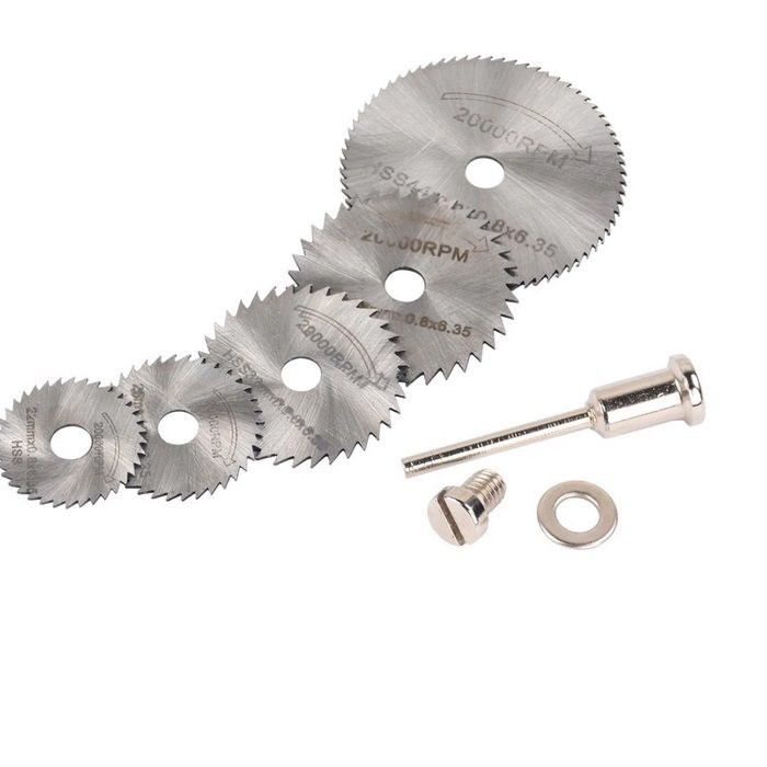 مجموعه 5 عددی صفحه فرز پولکی سامکو با آلیاژ HSS می باشد....از تیغه های HSS برای برش انواع چوب ، پلاستیک و فلزات نرم و در حجم کم استفاده می شود . مجموعه فوق از 5 تیغه و یک شفت تشکیل شده است که از تیغه های بزرگتر برای برش چوب و از تیغه های کوچکتر برای برش فلزات نرم می توان استفاده کرد . از این مجموعه عمدتا برای فرزهای حکاکی مینیاتوری استفاده می شود . ذکر این نکته ضروری است که این مجموعه برای کارهای ظریف مناسب بوده و نمی توان انتظار برش در حجم و ضخامت بالا را از آن داشت . به دلیل کیفیت ساخت بالاتر نسبت به نمونه های مشابه این ابزار توانسته است مجوز واردات به کشور کانادا را کسب کند . برای کار با این تیغه ها استفاده از عینک ایمنی توصیه می شود . تنظیم دور دستگاه با توجه به جنس کار و میزان پیشروی متغیر می باشد .