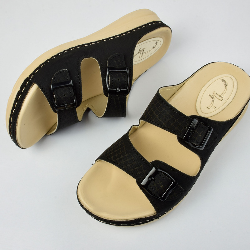 زیره این صندل از جنس پلیاورتان طراحی شده که علاوه بر سبک بودن، مقاومت بالایی در برابر سایش و ضربه دارد. طراحی طبی زیره، فشار روی کف پا را کاهش داده و برای استفاده طولانیمدت کاملاً مناسب است.