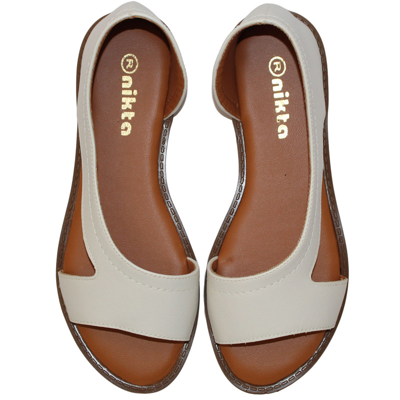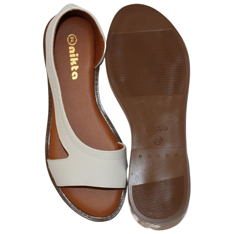 این صندل تخت زنانه بسیار شیک و زیبا توسط برند خوشنام و ایرانی نیکتا طراحی و تولید شده است. زیره این صندل زنانه از جنس PU به همراه لایه داخلی در قسمت کف از جنس فوم نرم و روکش چرم مصنوعی است. رویه این صندل در جنس چرم مصنوعی درجه یک بسیار نرم است که با ظرافت بسیار زیاد برش خورده و دوخته شده است. این صندل گزینه مناسبی برای استفاده روزمره در فصول گرم سال میباشد و جلوه بسیار زیبایی در پا دارد.