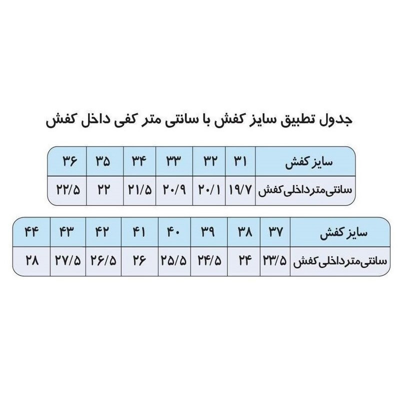 | جزئیات | پاشنه لژدار ( 4 سانتیمتر در قسمت پاشنه) مناسب برای روفرشی مناسب برای محیط های بیرونی رویه چسبی قابل ریگلاژ جهت تغییر انداره رویه و بهتر سایز شدن دور دوخت کف نرم و ژله ای طراحی ایرگونومیک زیره مقاومت سایشی زیاد زیره سایز 37 طول کف از پشت پاشنه تا نوک شست پا : 23 سانتیمتر سایز 38 طول کف از پشت پاشنه تا نوک شست پا : 23.5 سانتیمتر سایز 39 طول کف از پشت پاشنه تا نوک شست پا : 24 سانتیمتر سایز 40 طول کف از پشت پاشنه تا نوک شست پا : 24.5 سانتیمتر سایز 41 طول کف از پشت پاشنه تا نوک شست پا : 25 سانتیمتر سایز 42 طول کف از پشت پاشنه تا نوک شست پا : 25.5 سانتیمتر وزن متوسط یک لنگه 180 گرم |