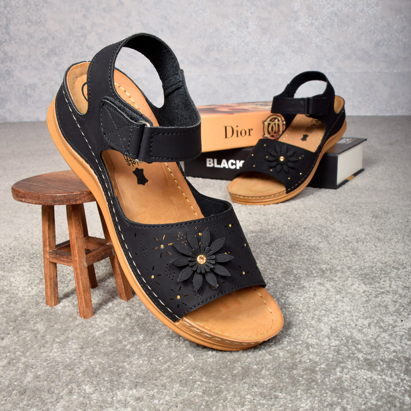 این صندل زنانه ، یکی از مدل های زیبا و فوق العاده راحت در میان صندل های زنانه پاپا میباشد. طراحی به روز این محصول به گونه ایست که علاوه بر آنکه از دوام بالایی برخوردار است ، نهایت راحتی را نیز برای شما به همراه دارد و توانسته نظرات زیادی را به خود جلب نماید. در زیره این محصول از پئ خار پاشنه استفاده شده است که همراه با کفی نرمی که در کنار آن قرار گرفته این محصول را به یک محصول فوق العاده راحت تبدیل کرده است .همچنین این محصول با بهره گیری از بهترین نوع زیره ( PU-RPM ) و رویه ی بسیار مقاوم و زیبا چرم مرغوب صنعتی ، انتخابی مناسب در میان صندل های زنانه میباشد.