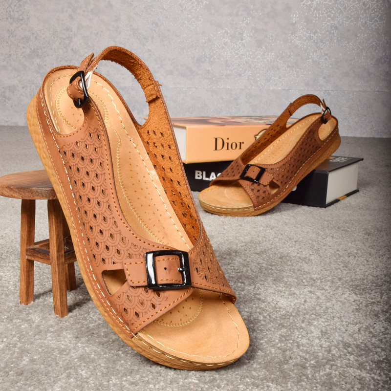 این صندل زنانه ، یکی از مدل های زیبا و فوق العاده راحت در میان صندل های زنانه پاپا میباشد. طراحی به روز این محصول به گونه ایست که علاوه بر آنکه از دوام بالایی برخوردار است ، نهایت راحتی را نیز برای شما به همراه دارد و توانسته نظرات زیادی را به خود جلب نماید. در زیره این محصول از پئ خار پاشنه استفاده شده است که همراه با کفی نرمی که در کنار آن قرار گرفته این محصول را به یک محصول فوق العاده راحت تبدیل کرده است .همچنین این محصول با بهره گیری از بهترین نوع زیره ( PU-RPM ) و رویه ی بسیار مقاوم و زیبا چرم مرغوب صنعتی ، انتخابی مناسب در میان صندل های زنانه میباشد.