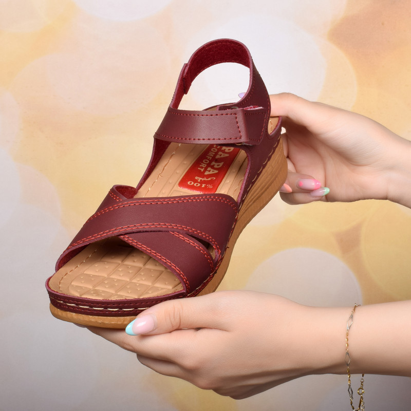 این صندل زنانه ، یکی از مدل های زیبا و فوق العاده راحت در میان صندل های زنانه پاپا میباشد. طراحی به روز این محصول به گونه ایست که علاوه بر آنکه از دوام بالایی برخوردار است ، نهایت راحتی را نیز برای شما به همراه دارد و توانسته نظرات زیادی را به خود جلب نماید. در زیره این محصول از پئ خار پاشنه استفاده شده است که همراه با کفی نرمی که در کنار آن قرار گرفته این محصول را به یک محصول فوق العاده راحت تبدیل کرده است .همچنین این محصول با بهره گیری از بهترین نوع زیره ( PU-RPM ) و رویه ی بسیار مقاوم و زیبا چرم مرغوب صنعتی ، انتخابی مناسب در میان صندل های زنانه میباشد.