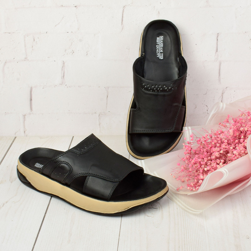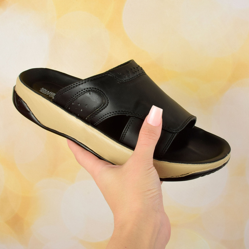 صندل طبی مردانه شهرام طب با طراحی باز در قسمت جلو و انتها، از تعریق پا و ایجاد زخم بین انگشتان جلوگیری میکند و راحتی و سلامت پاها را تضمین میکند.