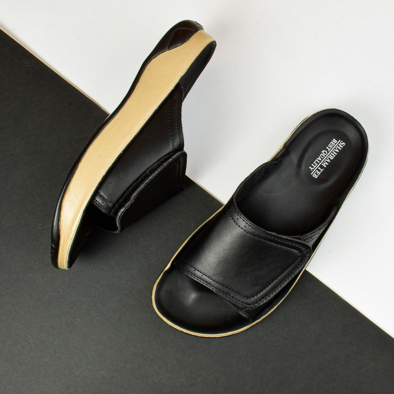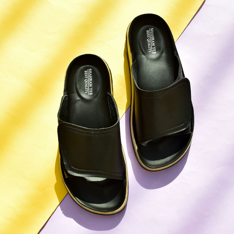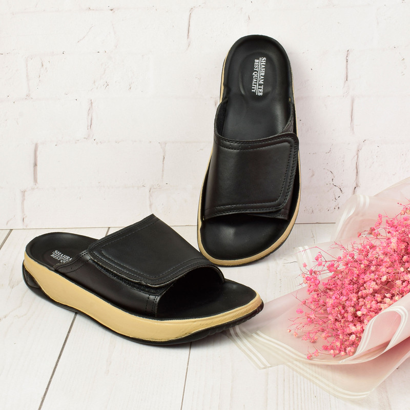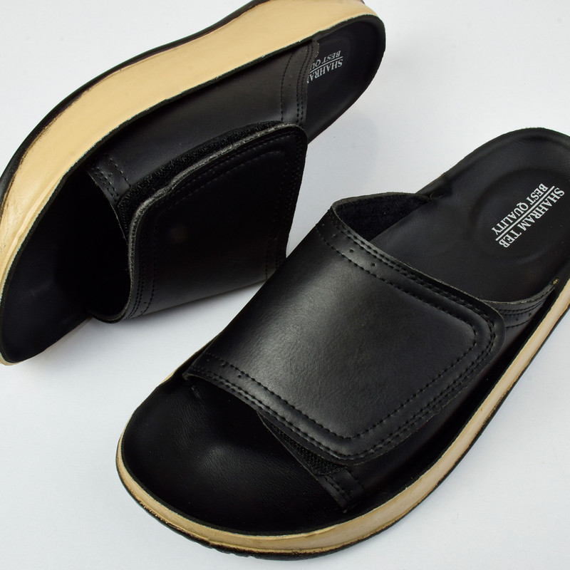 صندل طبی مردانه شهرام طب با طراحی باز در قسمت جلو و انتها، از تعریق پا و ایجاد زخم بین انگشتان جلوگیری میکند و راحتی و سلامت پاها را تضمین میکند.