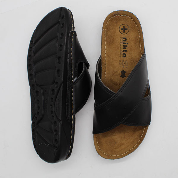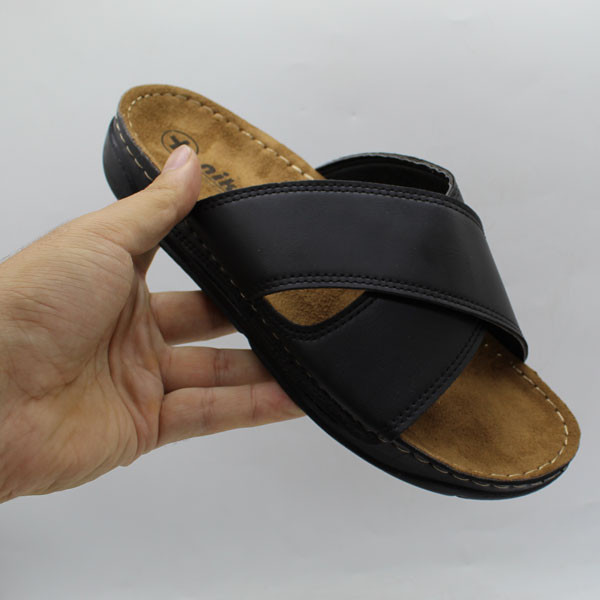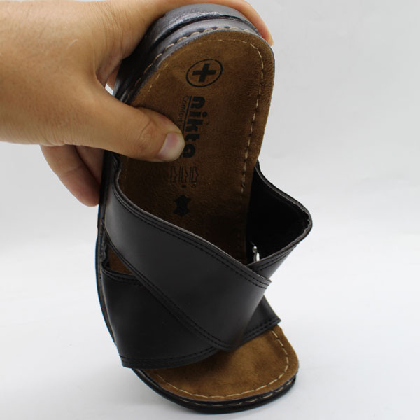 این صندل شیک و زیبا توسط برند خوشنام و ایرانی نیکتا طراحی و تولید شده است. زیره این صندل مردانه از جنس PU و رویه این صندل روفرشی از جنس چرم مصنوعی آستر دار است. این صندل گزینه بسیار مناسبی جهت استفاده در محیط های داخلی به عنوان روفرشی و همچنین استفاده روزمره در محیط های بیرونی است.کف این صندل مردانه نیکتا طبی و بسیار راحت میباشد. قالب این صندل استاندارد بوده و میتوانید مطابق سایز کفش شهری خود سایز صندل را انتخاب نموده و سفارش دهید. دور تادور این صندل جهت استحکام بشتر دور دوزی شده است.
