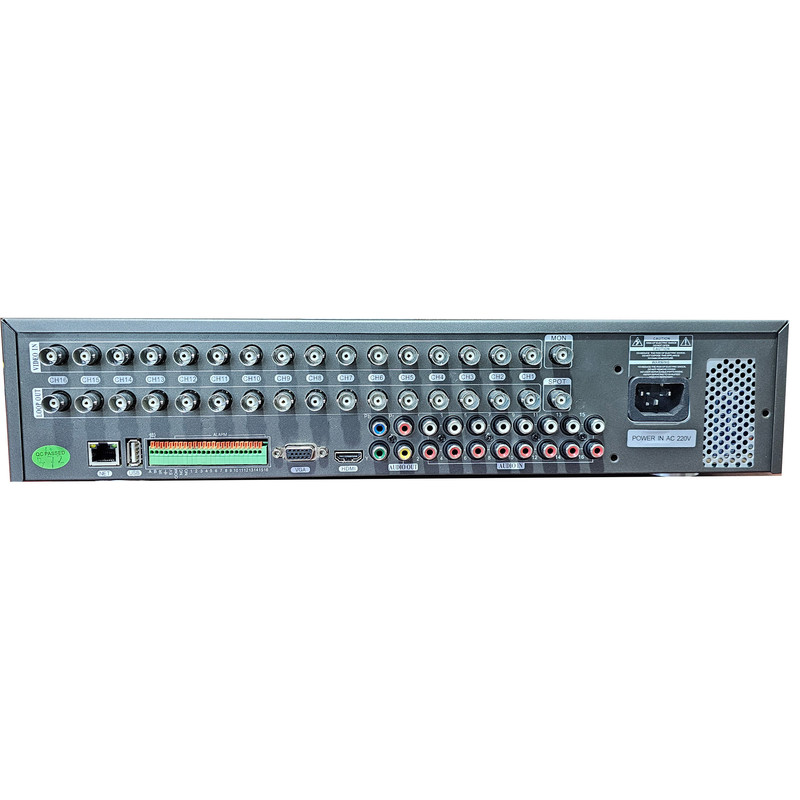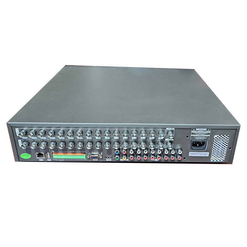 ضبط کننده ویدئویی آنالوگ شارک 16 کانال دقت داشته باشید این dvr انالوگ بوده و از دوربین های ahd پشتیبانی نمیکند این dvr دارای محفظه ۴ هارد بوده و شما میتوانید به آن ۴ هارد وصل کنید مجموعا 16 ترابایت مناسب مکان هایی است که کیفیت تصویر دوربین پایینی دارند و میخواهد به مدت 2 سال تا 3 سال تصویر ضبط شده داشته باشند دارای 16 ورودی تصویر و 16 ورودی صدا دارای پورت hdmi و vga و 485 و پورت آلارم دارای خروجی 5 ولت و ورودی lan دارای قابلیت loop out بدین معنا که شما با ورودی هر تصویر میتوانید یک خروجی bnc از همان تصویر داشته باشید دارای پاور داخل خود یعنی این دستگاه را بدون آداپتور و مسقیم به برق وصل میکنید