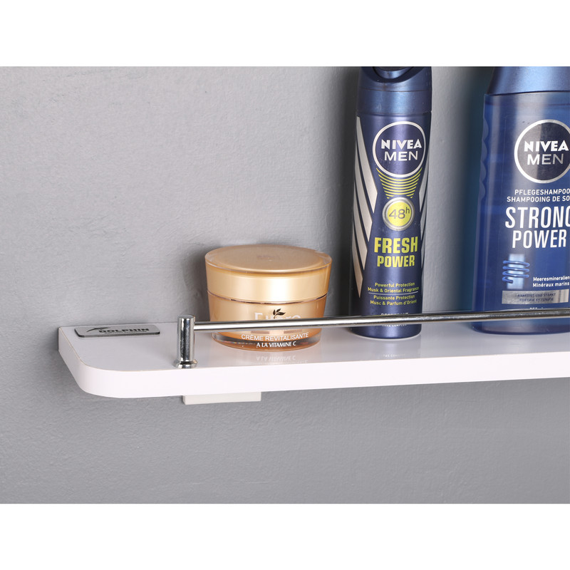 شلف دیواری «دلفین» ساخته شده از جنس پی وی سی با ضخامت 16 میلیمتر. این محصول داری طیف وسیعی از کاربرد است. در آشپزخانه برای قرار دادن شیشه و بطری ها، در اتاق برای نگهداری گلدان و لوازم دکوری ،در دستشویی و حمام، زیر آینه یا بصورت مجزا برای قرار دادن لوازم شوینده و آرایشی و... .نصب این محصول با 2 پایه فلزی که به همراه شلف است به سادگی انجام میپذیرد و در پوشی روی پایه قرار میگیرد که روی پیچ را بپوشاند. این شلف ضد آب است و میتواند مستقیما در معرض رطوبت و آب قرار بگیرد.