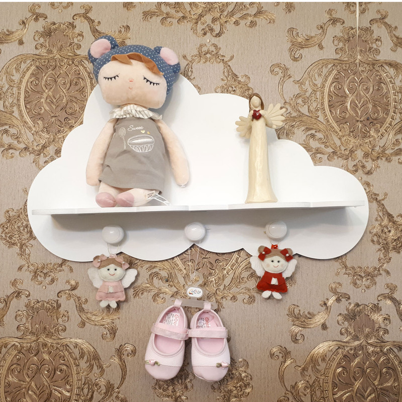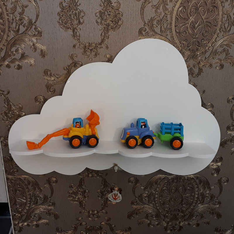 شلف دیواری طرح ابر محصول ایرانی خونه خاص بوده که از ورق پی وی سی درجه یک تهیه شده و قابل شستشو می باشد. این شلف زیبا مناسب اتاق کودک، مهد کودک ها و ... می باشد و دارای سه آویز سفید رنگ می باشد