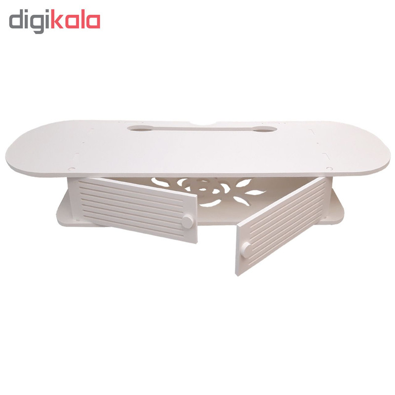 طبقه دیواری مدل درب دار محصول ایرانی خونه خاص بوده که از ورق درجه یک پی وی سی تهیه شده است. این محصول مناسب گیرنده دیجیتال، ستاب باکس، دی وی دی، کنسول بازی، مودم و ... ساخته شده است و طراحی آن به شکل درب دار است و در صورت بسته بودن درب نیز دستگاههای داخل با ریموت کنترل کار می کنند. نصب و مونتاژ درب های آن نیز اختیاری می باشد و در صورت عدم تمایل درب ها باز شده و بدون درب استفاده می شود. حسن این طبقه با محصولات مشابه در بازار اندازه بزرگ محفظه داخلی است که طول آن 50 سانتی متر بوده و هر نوع دستگاه درون آن جای می گیرد. این محصول کاملا قابل شستشو و ضد آب است و بدون نگرانی از لک و کثیفی با آب و هر مایع شوینده ای تمیز شده و مانند روز اول می شود