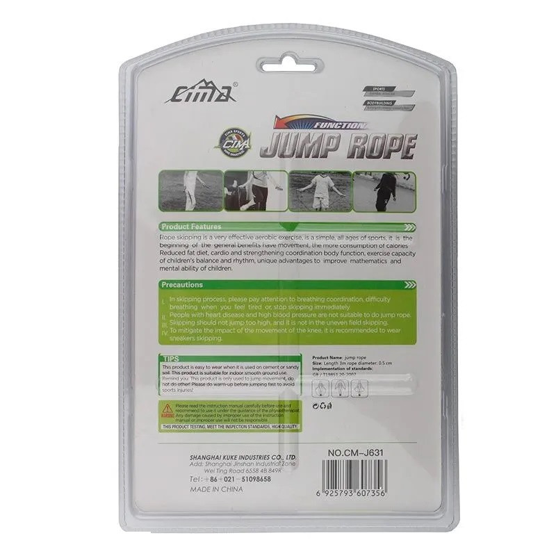 طناب زدن برای تمرینات استقامتی، سوزاندن کالری و افزایش سرعت، چابکی عالی و هماهنگی بدن، بسیار مفید است. طناب ورزشی بدنسازی از نوع کابلی با روکش PVC و ضخامت 0.5 سانتی متر می باشد، بنابراین در برابر سایش و پارگی حتی در سطوح ناهموار نیز مقاومت می کند. طول آن، 3 متر بوده که از طریق دسته ها قابل تنظیم است، تا برای همه ی افراد مناسب باشد.