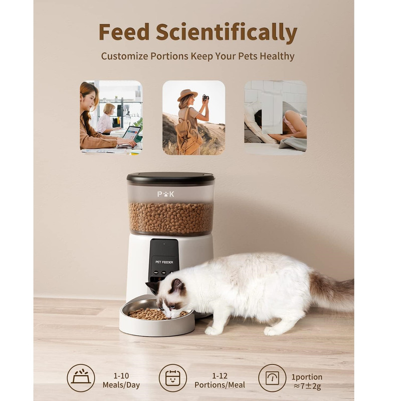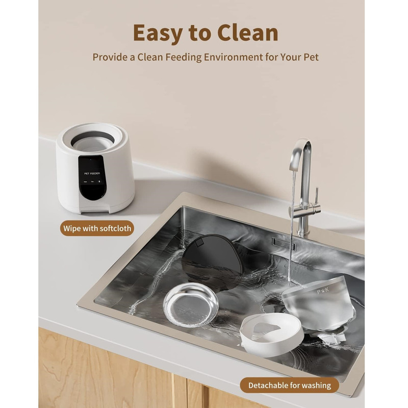 سایر توضیحات ظرف غذای اتوماتیک گربه و سگ پاپی کیت مدل ‎DU35L-WT : یک برنامه تغذیه خودکار برای حیوانات خانگی تنظیم کنید تا به آنها یک رژیم غذایی سالم بدهید. تغذیه گربه با Puppy Kitty برای ارائه بهترین تجربه کاربری طراحی شده است. این برنامه از تغذیه خودکار و دستی پشتیبانی می کند، بنابراین می توانید برنامه غذایی سالم حیوان خانگی خود را برنامه ریزی و تنظیم کنید، حتی اگر نزدیک حیوان خانگی خود نباشید (مثلاً برای سفرهای کاری، مسافرت، خواب، مهمانی). فیدر اتوماتیک همیشه اندازه مناسب و تغذیه مداوم، به موقع، سالم و متفکرانه را تضمین می کند.4 لیتر ظرفیت بزرگ ، APP کنترل از راه دور برای تغذیه ،منبع تغذیه دوگانه( برق شهری و باتری ) ، طراحی ضد گرفتگی دهانه خروجی ، حداکثر 10 وعده غذایی در روز، 1-12 وعده، 7 گرم ± 2 گرم در هر وعده ، ضبط صدای دهه 10 ، قابل جدا شدن و تمیز کردن آسان ،سینی غذا 304 استیل ضد زنگ میباشد. کنترل از راه دور برنامه: تغذیه گربه خودکار PUPPY KITTY با کنترل از راه دور برنامه (فقط 2.4G WiFi). می توانید از هر کجا و در هر زمان با تلفن همراه خود (اندروید و iOS) به حیوانات خانگی خود غذا دهید و سوابق تغذیه را برای کنترل اداری پیگیری کنید. شما می توانید تا 10 وعده غذایی در روز با 1-12 وعده در هر وعده غذایی، 7 گرم ± 2 گرم در هر وعده تنظیم کنید. دستگاه را می توان از چندین دستگاه دستی کنترل کرد. طراوت با هر لقمه: درب کشویی قابل قفل غذای خودکار گربه از دریافت مخفیانه غذای اضافی حیوانات خانگی شما جلوگیری می کند. کیسه خشک کن داخلی غذا را تازه و ترد نگه می دارد. کاسه استیل ضد زنگ درجه غذایی تغذیه سالم و بهداشتی را تضمین می کند و حیوانات خانگی شما را از آکنه چانه دور نگه می دارد. منبع تغذیه دوگانه: تغذیه گربه اتوماتیک توسط یک آداپتور 5 ولت یا باتری های 3 بعدی تغذیه می شود. توصیه می شود هم از باتری و هم از آداپتور استفاده کنید تا حیوان خانگی شما حتی در صورت قطع برق یک وعده غذایی را از دست ندهد. برنامه تغذیه نیازی به تنظیم مجدد در هنگام بازیابی منبع تغذیه ندارد. بدون BPA و تمیز کردن آسان: برای سلامت حیوان خانگی شما، تغذیه گربه PUPPY KITTY و لوازم جانبی آن فاقد BPA هستند. درپوش مخزن، مخزن و کاسه تغذیه سگ فیدر اتوماتیک برای تمیز کردن کامل قابل جدا شدن است. ساختار پیشرفته چرخش اتوماتیک و طراحی سطح شیبدار دهانه خروجی مشکل گرفتگی را حل می کند. یک تماس غذایی برای حیوان خانگی خود ضبط کنید: دکمه ضبط روی فیدر را فشار داده و نگه دارید تا ضبط یک پیام صوتی 10 ثانیه ای شروع شود. حیوان می تواند صدای ضبط شده شما را در حالی که غذا در حال توزیع است بشنود، گویی شما در اطراف هستید و آنها را تشویق به خوردن می کنید.