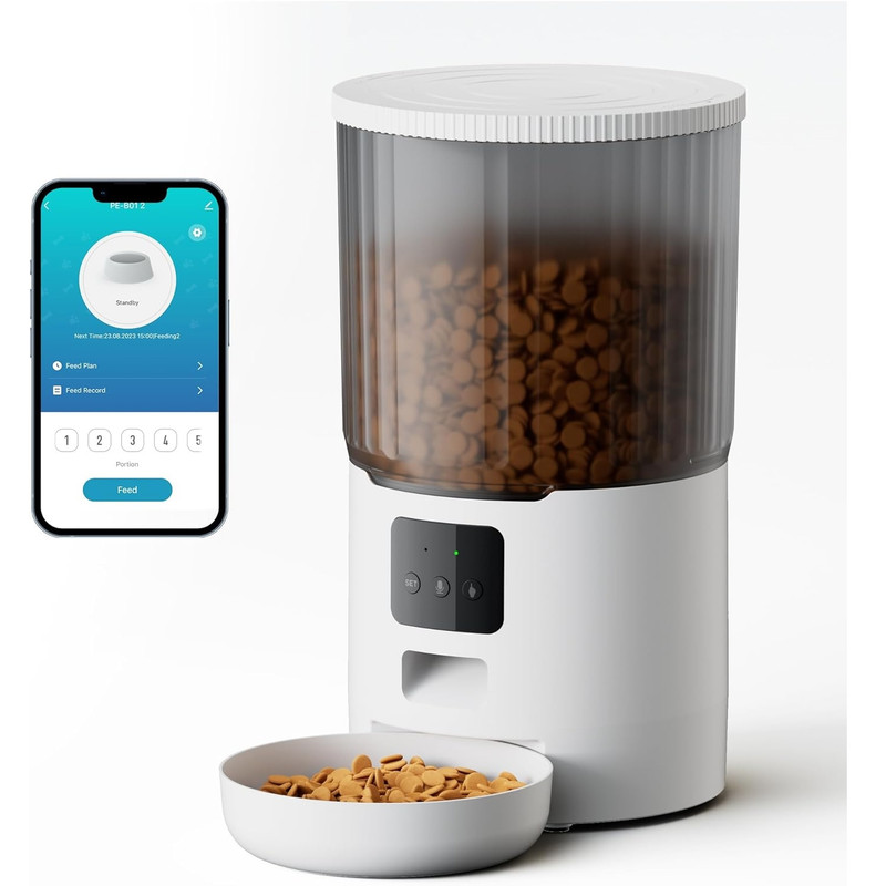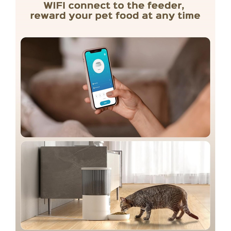 سایر توضیحات توجه داشته باشید: فقط 2.4GWiFi پشتیبانی می شود، وای فای 5G پشتیبانی نمی شود. از اضافه کردن غذای نیمه خشک یا مرطوب برای حیوانات خانگی خودداری کنید، این محصول فقط می تواند از غذای خشک حیوانات خانگی استفاده کند. غذا با قطر بیش از 1 اینچ پشتیبانی نمی شود. اگر دستگاه تغذیه دقیق نیست یا تغذیه نمی کند، لطفاً بررسی کنید که آیا غذا بیش از حد در بشقاب غذا وجود دارد و آیا کانال های غذا مسدود شده است یا خیر. لطفا خروجی و کانال های غذا را تمیز کنید. در سمت چپ کنترل پنل نشانگر کم بودن باتری وجود دارد. وقتی بیرون می روید، مطمئن شوید که چراغ نشانگر ولتاژ روشن است یا خیر. در صورت وجود نور یا چراغ چشمک زن هنگام تخلیه یا صدا، لطفاً باتری را به موقع تعویض کنید تا از گرسنگی حیوان خانگی خود جلوگیری کنید. (باتری شامل نمی شود بیشتر بیاموزید این کالا را نمی توان به محل تحویل انتخابی شما ارسال کرد. لطفاً مکان تحویل متفاوتی را انتخاب کنید. برای بزرگنمایی تصویر را روی آن بچرخانید تغذیه گربه خودکار، تغذیه گربه 6 لیتری وای فای با زمان غذاخوری 10 ثانیه، پخش کننده غذای گربه با برنامه زمانی سفارشی تا 12 وعده، 10 وعده غذا در روز، APP Control (