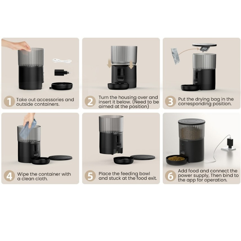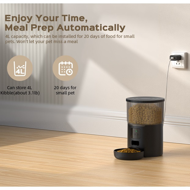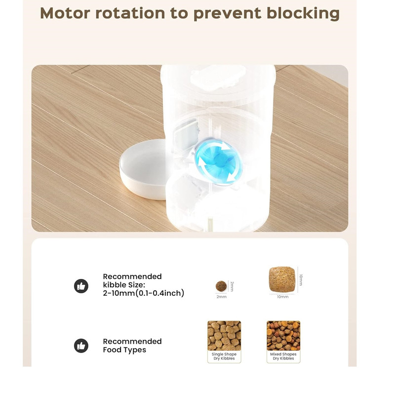 تغذیه تازه و تمیز کردن آسان مخزن غذا، درب و کاسه برای تمیز کردن آسان قابل جابجایی هستند پشتیبانی از منابع تغذیه دوگانه: پلاگین کابل USB (شامل) و باتری ها (شامل نمی شود). تغذیه گربه که با باتری کار می کند، آرامش خاطر را در هنگام قطع برق فراهم می کند. حتی اگر دستگاه آفلاین باشد (وای‌فای سیگنال ندارد)، فیدری که از باتری تغذیه می‌کند همچنان در زمانی که تنظیم کرده‌اید تغذیه می‌شود.