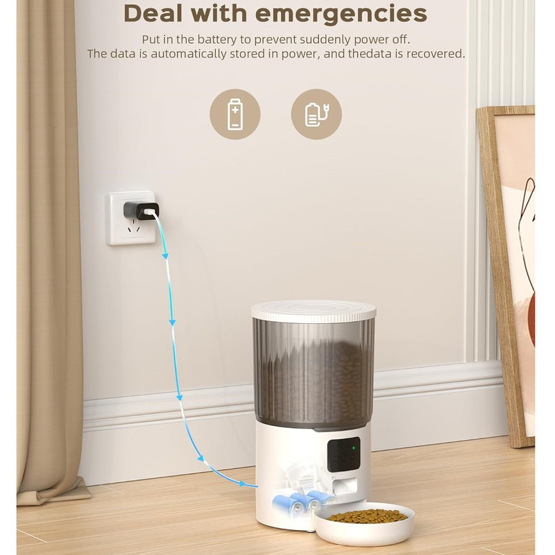 پشتیبانی از منابع تغذیه دوگانه: پلاگین کابل USB (شامل) و باتری ها (شامل نمی شود). تغذیه گربه که با باتری کار می کند، آرامش خاطر را در هنگام قطع برق فراهم می کند. حتی اگر دستگاه آفلاین باشد (وای‌فای سیگنال ندارد)، فیدری که از باتری تغذیه می‌کند همچنان در زمانی که تنظیم کرده‌اید تغذیه می‌شود.