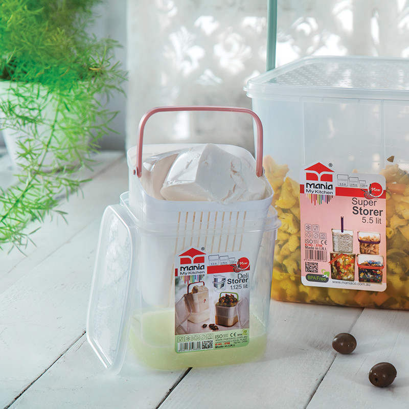 در این محصول، به منظور جدا کردن آب از مواد غذایی، سبدی وجود دارد که در هنگام استفاده این سبد به واسطه یک گیره S شکل در سطحی بالاتر قرار گرفته و به لبه مخزن اصلی متصل می شود و امکان دسترسی آسان به مواد داخل ظرف را فراهم می آورد. طراحی این محصول به گونه ایست که برای انواع ترشیجات، لبنیات، کنسروهای باز شده و … قابل استفاده است. همانطور که گفته شد ظرف و آبکش ترشیجات و لبنیات مانیا از جنس پلی پروپیلن ساخته شده است. به همین دلیل وزن این محصول تنها 138 گرم بوده و برای تضمین سلامت شما از مواد فاقد BPA یا به اصطلاح همان BPA-Free استفاده شده است. مانیا در طراحی و تولید محصولات از تکنولوژی های روز دنیا استفاده کرده و همین امر سبب اخذ تاییدیه انجمن نانو شده است. تکنولوژی نانو در تولید محصولات مانیا سبب شده علاوه بر ضد گرد و غبار بودن محصولات در برابر خط و خش هم مقاوم باشند. از دیگر ویژگی های محصولات مانیا می توان به آنتی باکتریال بودن آن ها شاره کرد. در انتها لازم به یادآوری است که قابل بازیافت بودن تولیدات مانیا کمک شایانی به محیط زیست بوده پس از پایان عمر مفید محصولات به راحتی به چرخه استفاده مجدد بر خواهند گشت.