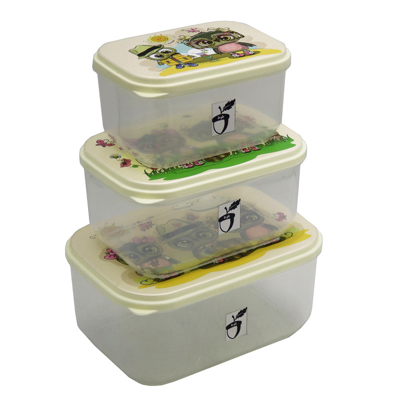 | سایر توضیحات | - مجموعه 3 عددی ظرف غذا مدل بلوط - طرح : جغد گردشگر - طرح قالب : مستطیلی - طرح جالب کارتونی نگهدارنده میوه و غذا - در 3 سایز سایز بزرگ : 22.5x16x11سانتیمتر . متوسط : 19x14x9.5 سانتیمتر . کوچک : 16x11x8.5 سانتیمتر - جنس : پلاستیک فشرده ساخته شده از بهترین مواد درجه یک موجود در بازار - وزن : 380 گرم |