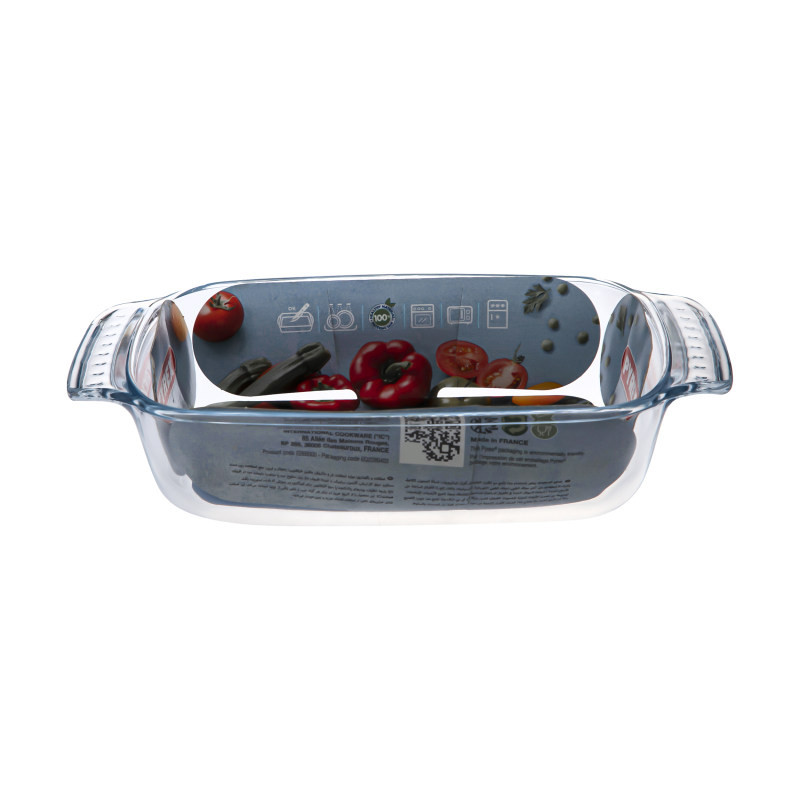 | سایر توضیحات | ویژگی های اصلی تابه مستطیل 228 : -طراحی مدرن و حرفه ای برای استفاده روی میز پذیرایی – دستگیره های برجسته : جلوگیر از لیز خوردت ظرف و نگهداری راحت تر – مناسب برای مایکروویو مزایای استفاده از شیشه بورسیلیکات Pyrex: – درجه حرارت شدید از -40 درجه سانتیگراد تا + 300 درجه سانتیگراد را پشتیبانی می کند – مقاوم در برابر شوک حرارتی تا دمای 220 درجه سانتیگراد: شیشه پیرکس می تواند مستقیماً از فریزر با دمای 20 درجه سانتیگراد به داخل فر با دمای 200 درجه سانتیگراد وارد شود. -دارا بودن مواد بهداشتی بدون BPA که لکه ها یا بو را در خود نگه نمی دارد. – لوازم آشپزخانه پیرکس: ضد خش -گنجایش : 0.7 لیتر مناسب 1 الی 2 نفر |