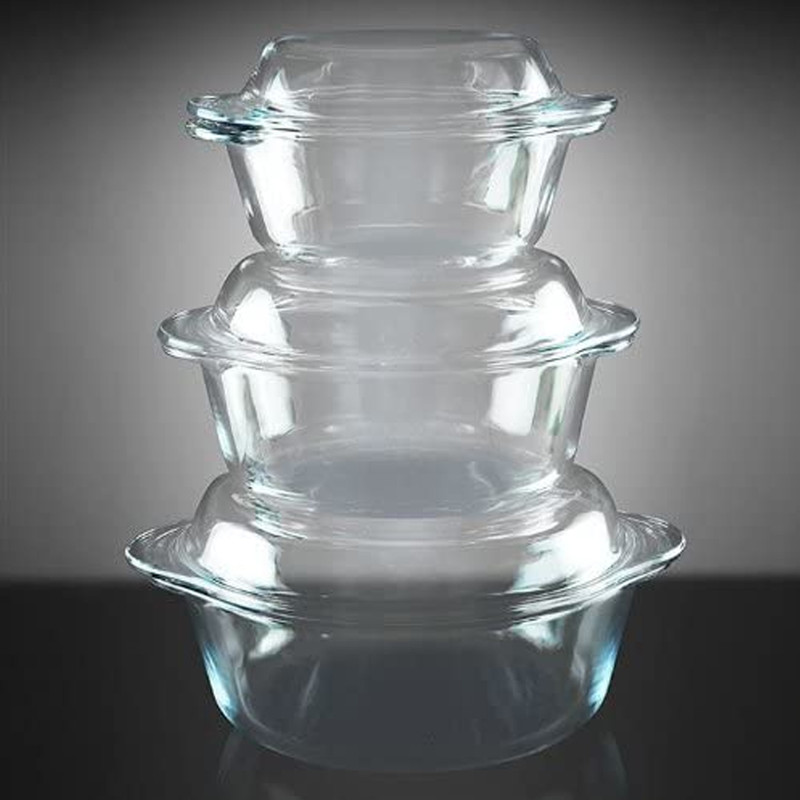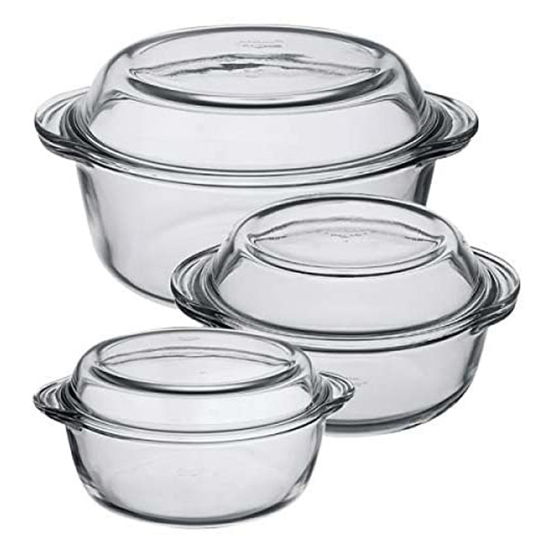 ظروف پخت و پز بلوری یا اصطلاحا پیرکس با قابلیت استفاده در فر و مایکروویو مصارف بسیار زیادی داشته و به هنگام پخت انواع خوراک و غذاهای ایرانی و فرنگی و حتی انواع کیک و دسر کاربرد دارند. ظروف برند BORCAM از محصولات تولید شده توسط برند معتبر پاشاباغچه PACABAHCE ترکیه می باشند. این ظروف از بلور با کیفیت و حرارت دیده ساخته شده و از داخل و بیرون دارای سطحی صاف و صیقلی می باشند و بازه دمایی -40 تا 300 درجه سانتی گراد را تحمل می کنند لذا قابل استفاده در فر، مایکروویو و فریزر می باشند.ست ظروف پخت بورجام مدل Ovenware کد 500915 شامل 3 عدد قابلمه گرد درب دار است که به ترتیب 1450، 2100 و 3150 میلی لیتر حجم دارند. هر سع قابلمه دارای دربی با عمق کمتر از بدنه خود می باشند که هم امکان استفاده به شکل درب برای ظرف اصلی و هم به شکل مستقل جهت پخت را دارد. این ظروف قابل شستشو در ماشین ظرف شویی می باشد. این سرویس پخت با کیفیت ساخت عالی شامل شش تکه کاربردی است و برای یک آشپزی سالم و لذتبخش، بهترین انتخاب در سبد خرید خانوادهی شما خواهد بود. تمام ظروف این سرویس زیبای ششتکه برای انواع پختوپز مناسب بوده و در آشپزخانه کاربردی هستند.