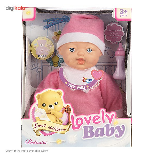 دوست دارید یک عروسک شبیه به نوزاد واقعی برای دخترتان خریده و او را حسابی خوشحال کنید؟ «عروسک بلیندا مدل Lovely Baby» یک عروسک شیرین است که چهار صدای متفاوت دارد!یکی از اسباببازیهای موردعلاقه دختربچهها معمولاً عروسک است. عروسک بلیندا مدل Lovely Baby در ابعاد 32 × 10 × 17 سانتیمتر بوده و توسط شرکت بلیندا ساختهشده است. این عروسک 32 سانتیمتری، میتواند با شیشه شیر بخورد و در حین شیرخوردن صدای مکیدن شیشه شیر را هم شما به گوش خواهد رسید! علاوه براین با فشردن قفسه سینه عروسک میتواند بخندد و سخن بگوید یا در حین خواب خرخر کند! این عروسک همانند یک نوزاد واقعی در هنگام خواب چشمانش را میبندد. عروسک Lovely Baby با توجه به ابعادش در گروه عروسکهای متوسط قرارگرفته و وزن آن 911 گرم است. وزن بالای آن با توجه به جنسش، که از پلاستیک سخت بوده، طبیعی است. کیفیت ساخت آن مناسب بوده و مورد تأیید اتحادیه اروپاست. این عروسک از مواد قابل بازیافت ساختهشده است. برای بازی با این نوزاد شیرین باید چهار باتری در آن قرار دهید. همراه این اسباببازی دوستداشتنی یک شیشه شیر پلاستیکی بیرنگ در یک بسته به ابعاد 29 × 19 × 23 سانتیمتر قرارگرفته است. این عروسک یک هدیه مناسب برای بچههای بالای سه سال است که میتوانید به آنها هدیه داده و برق شادی را در چشمانشان ببینید.